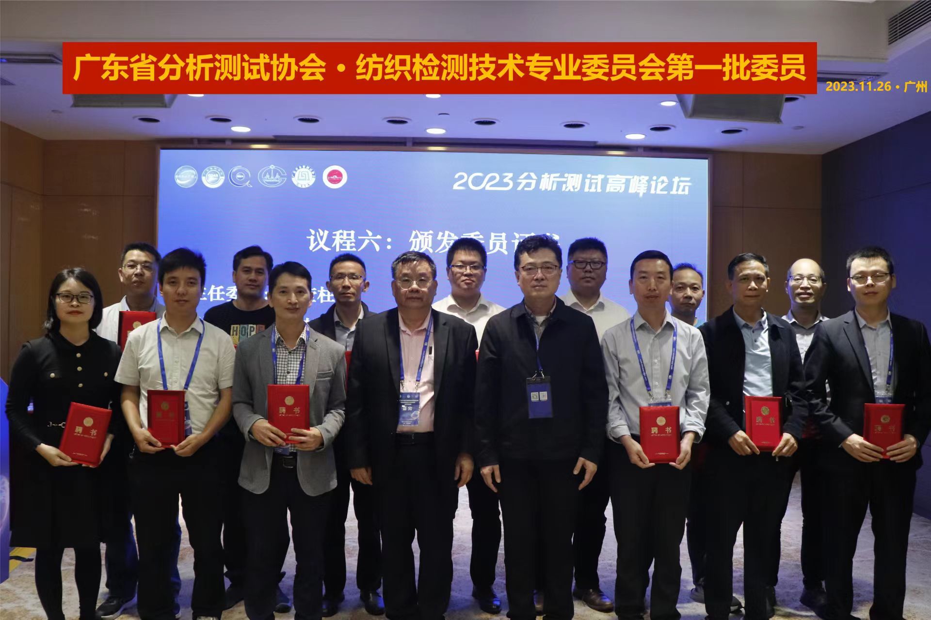 會議選舉了紡織檢測技術專業委員會第一批委員25名,13位常務委員,包括1位主任委員、11位副主任委員和1位秘書長。吳惠勤、欒天罡為紡織檢測技術專業委員會當選委員頒發了聘書。