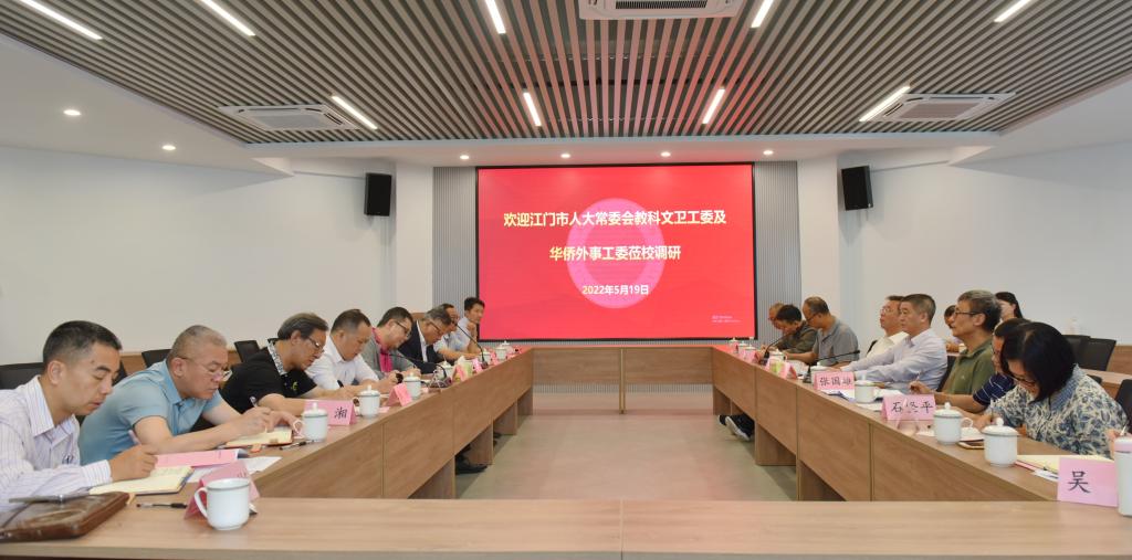 5月19日,江門市人大常委會副主任吳國杰率市人大常委會教科文衛工委以及華僑外事工委一行9人到我校開展“僑鄉文化保護及發展情況”專題調研。五邑大學黨委副書記、校長張運華,黨委副書記李靄康,學術委員會主任張國雄教授,廣東僑鄉文化研究院、美育教育中心負責人以及有關專家、教師等參加了調研活動。