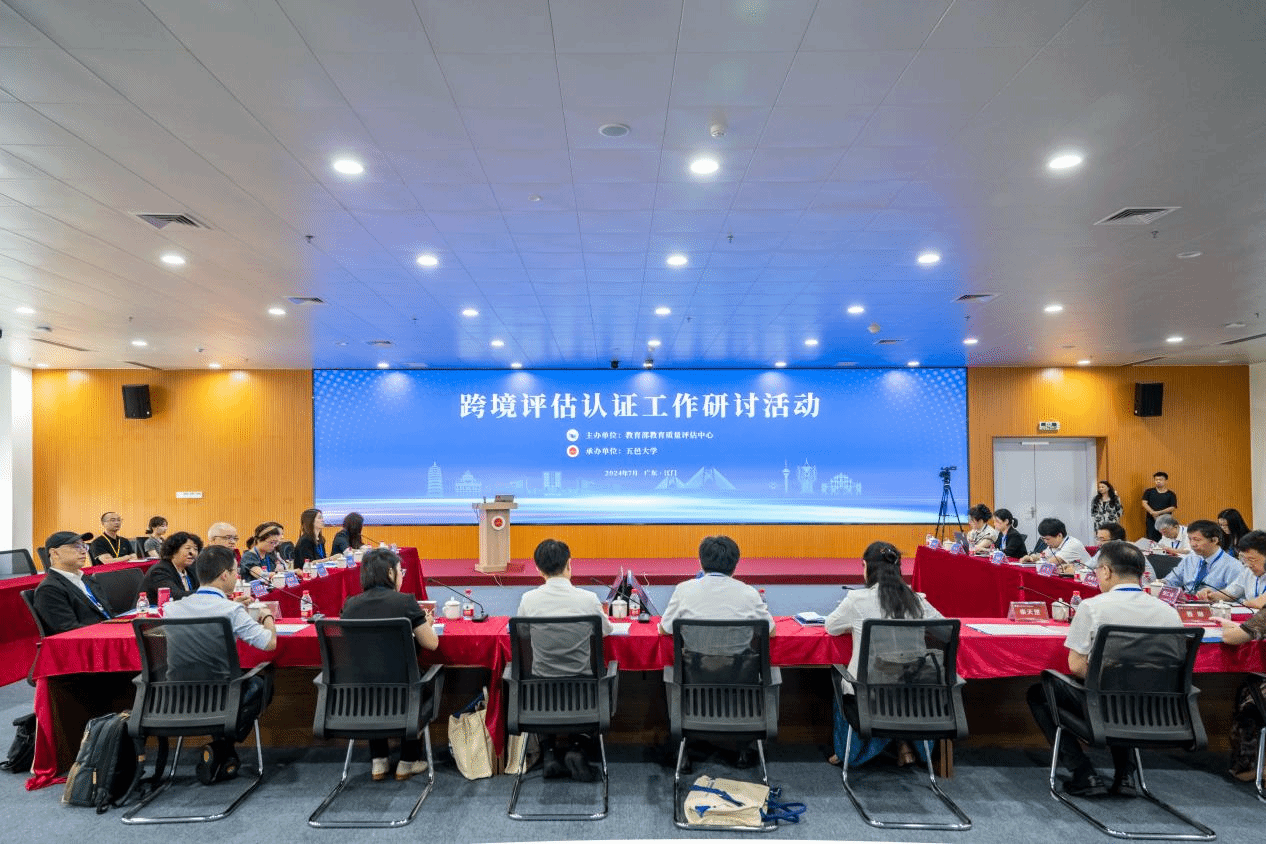 2024年7月4日,跨境評估認證工作研討活動在廣東江門順利舉辦。教育部港澳臺辦、中央政府駐澳門聯絡辦公室、澳門特別行政區政府教育及青年發展局、教育部教育質量評估中心、廣東省教育廳、五邑大學及境外高校代表、專家代表等20余人參加活動,活動由教育部教育質量評估中心副主任周愛軍主持。