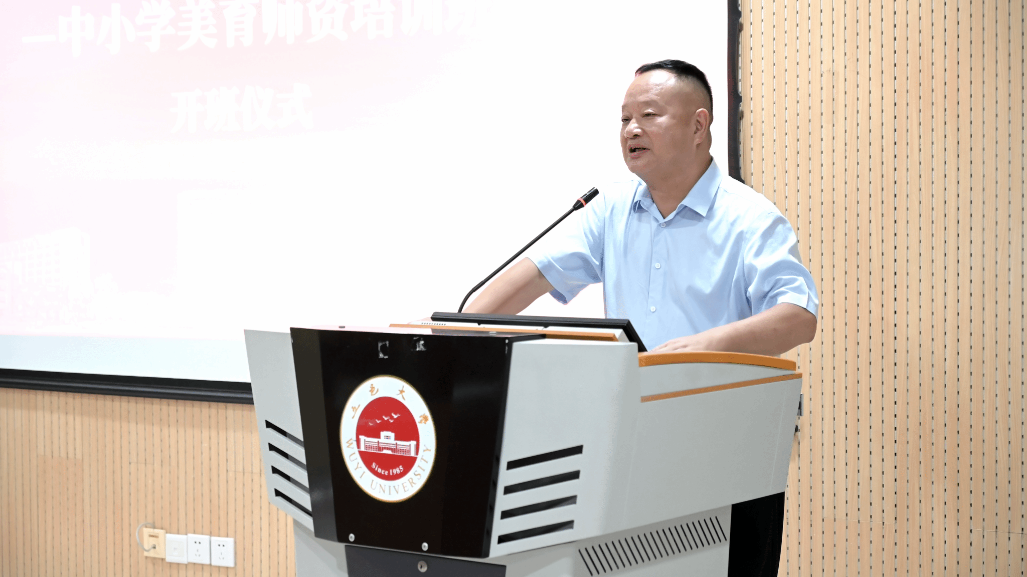 在開班儀式上,董超俊在致辭中強調(diào)了美育教育在促進學生全面發(fā)展中的作用不可替代,希望學員們珍惜此次寶貴的學習機會,以飽滿的熱情投入到學習中,不斷提升專業(yè)素養(yǎng),增強文化自信,為實現(xiàn)個人價值與社會和諧發(fā)展的美好愿景貢獻力量。