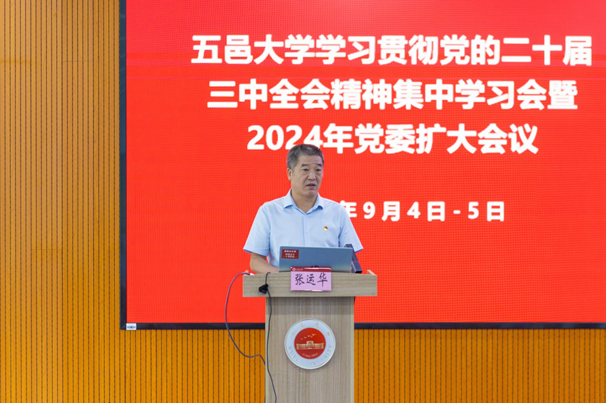 9月4日—5日,五邑大學召開學習貫徹黨的二十屆三中全會精神集中學習會暨2024年黨委擴大會議。全體校領導,黨委委員、紀委委員,中層干部,在市人大、政協和各民主黨派市委會任職的學校黨外代表人士,校內各民主黨派、僑聯會、知聯會主要負責人參加會議。