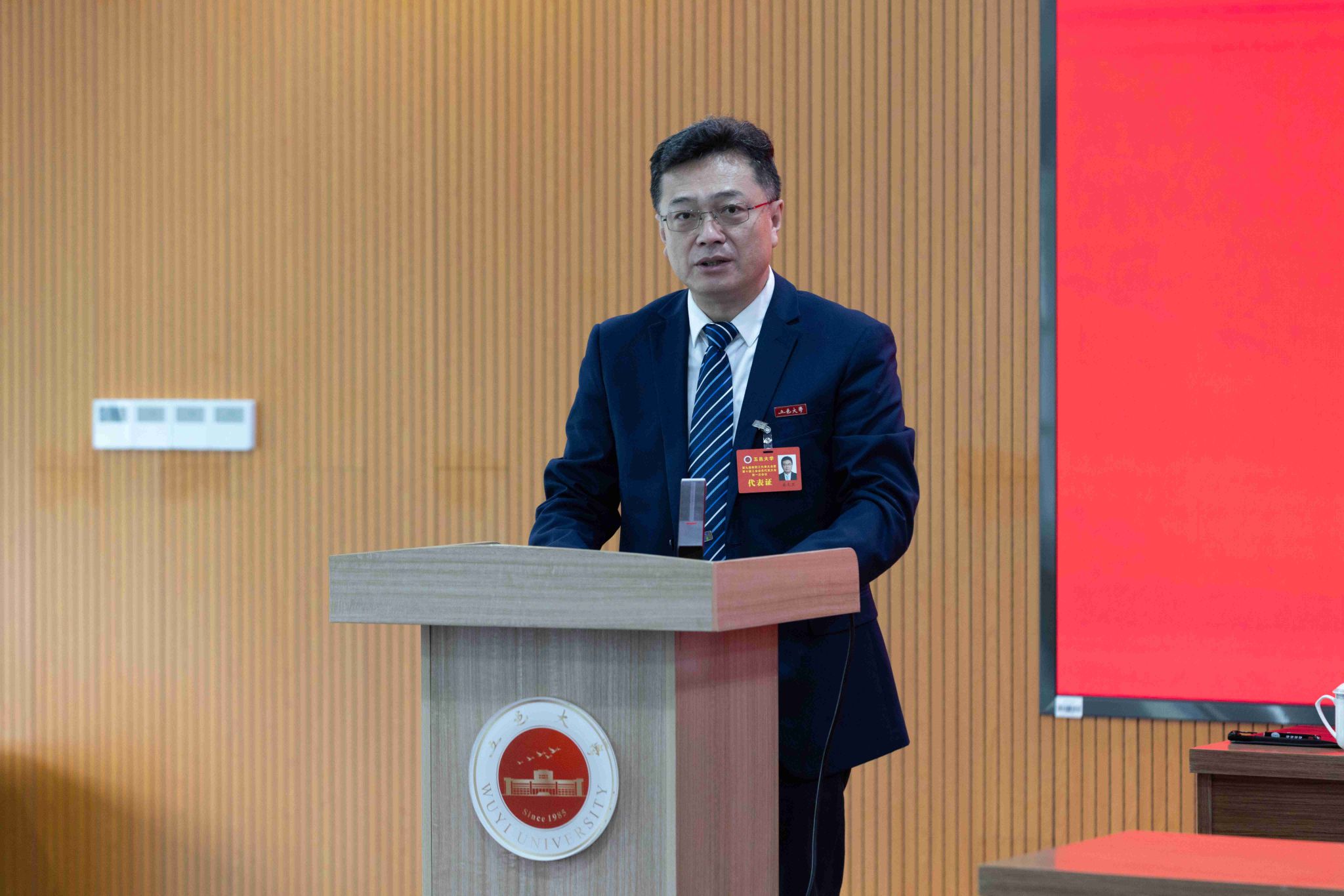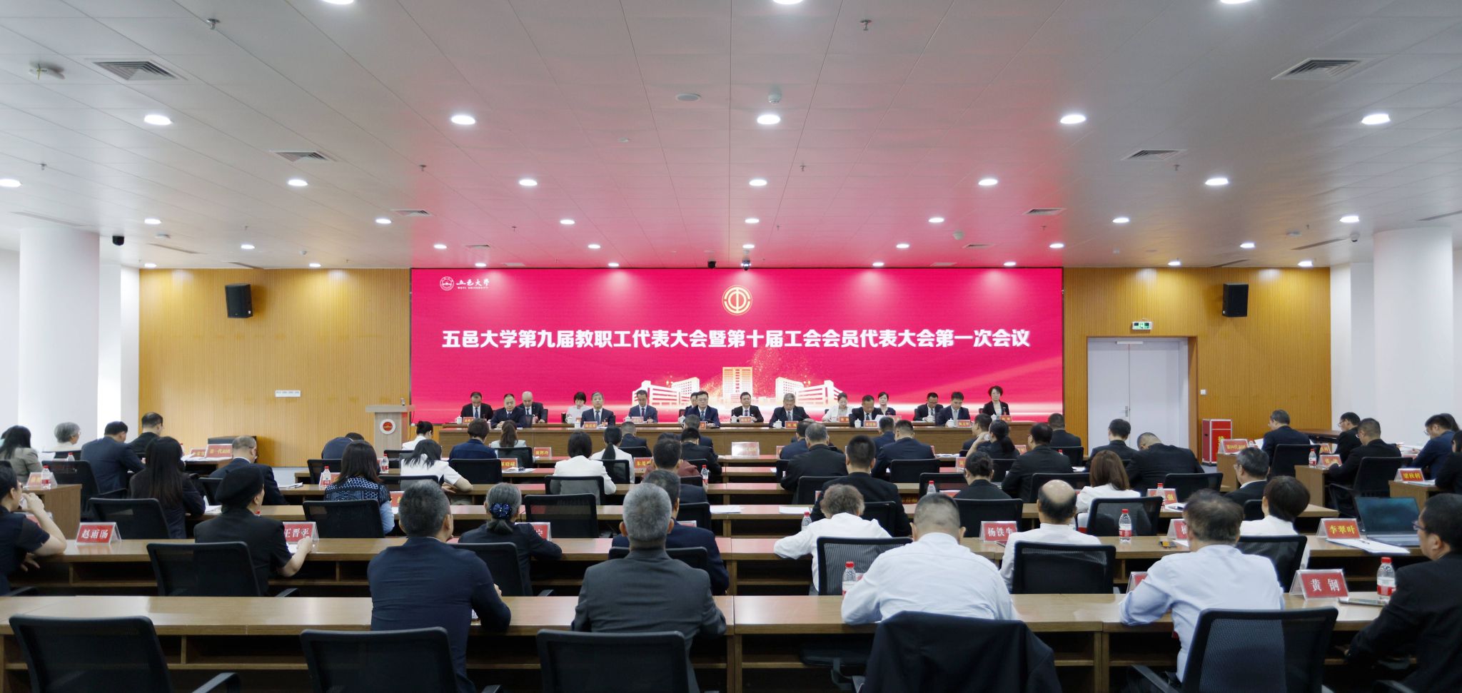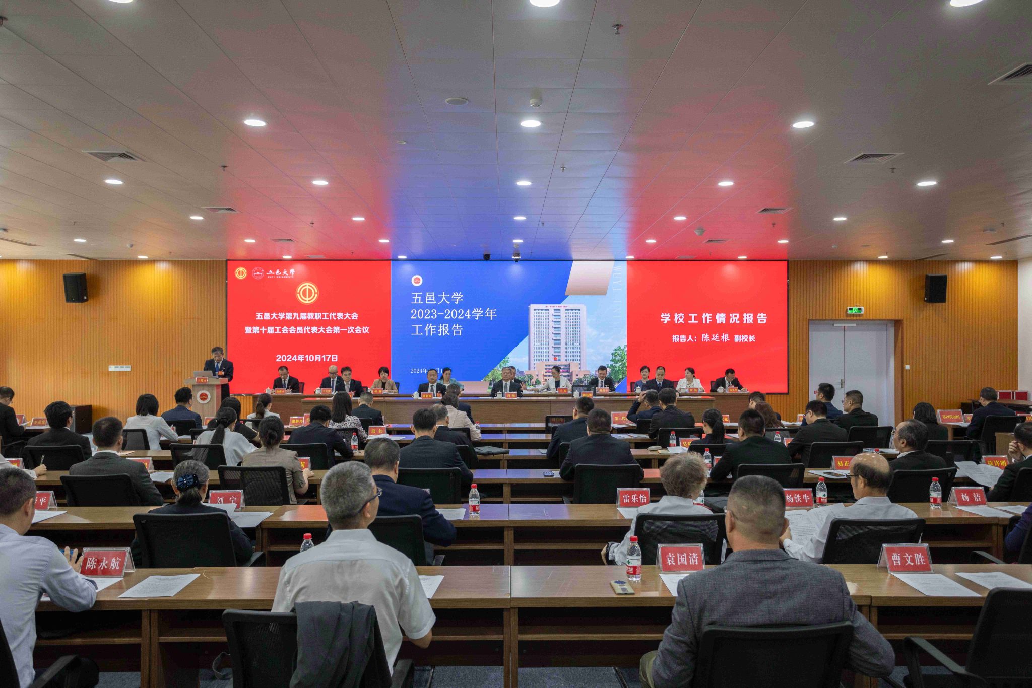 10月17日-18日,五邑大學第九屆教職工代表大會暨第十屆工會會員代表大會第一次會議(以下簡稱“雙代會”)在策文商學院大樓副樓204報告廳召開。校黨委書記欒天罡等全體在校校領導,退休教職工代表、列席代表、特邀代表等120余人參加會議。會議由校黨委常委、副校長、校工會主席周飚同志主持。