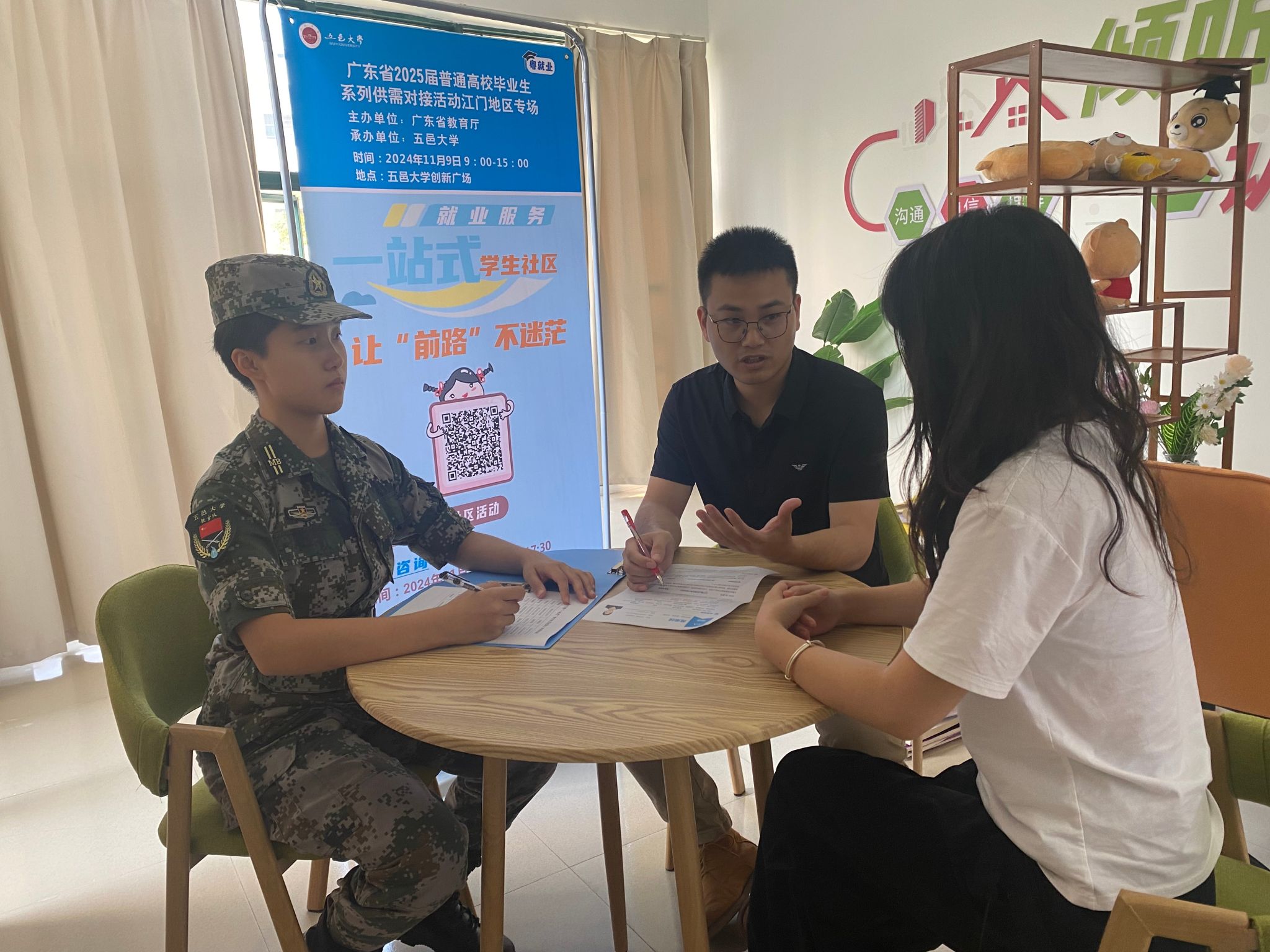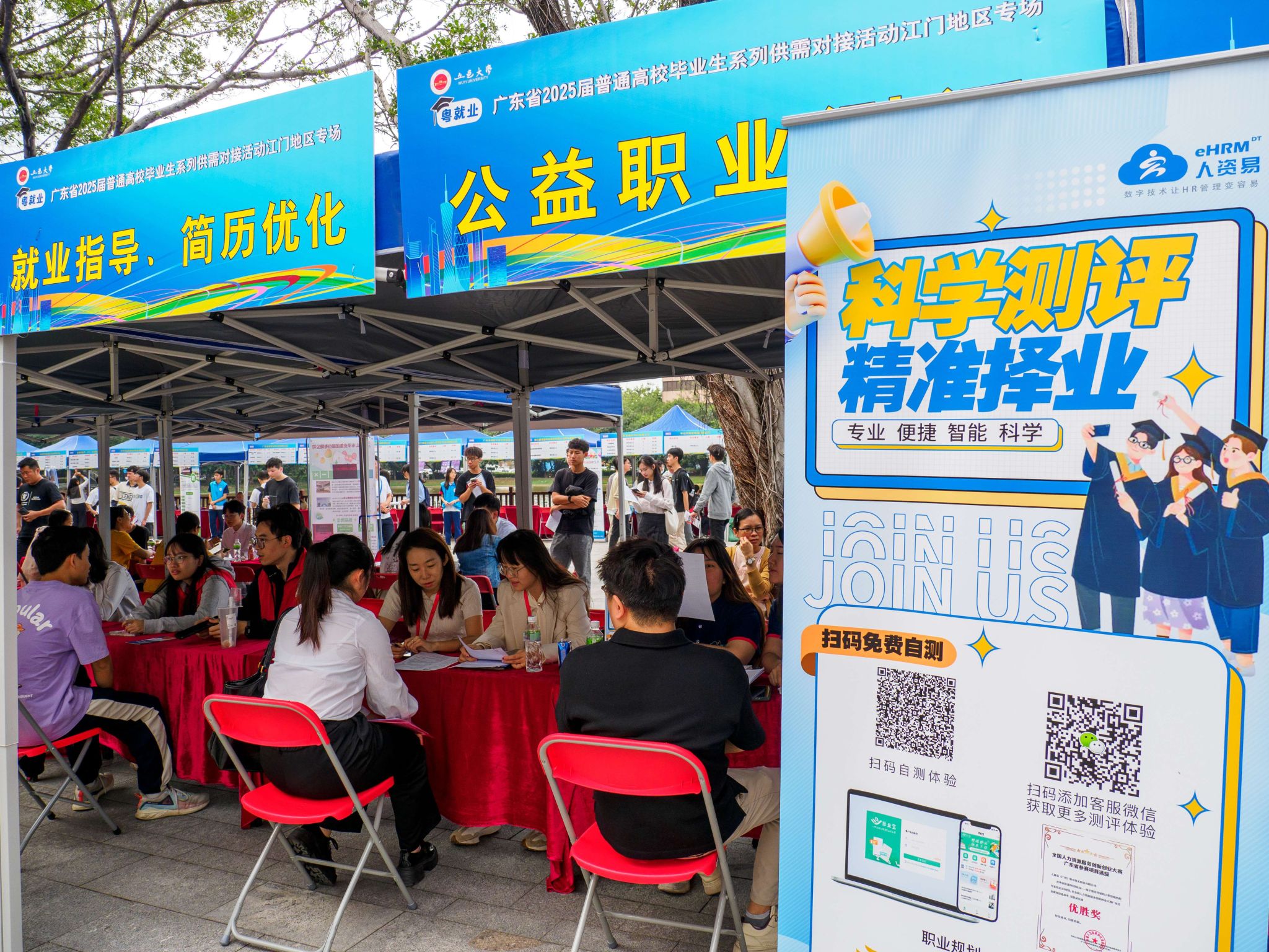 11月9日,由廣東省教育廳主辦、五邑大學(xué)承辦的“粵就業(yè)”廣東省2025屆普通高校畢業(yè)生系列供需對接活動江門地區(qū)專場在五邑大學(xué)創(chuàng)新廣場順利舉行。廣東省教育廳學(xué)生就業(yè)創(chuàng)業(yè)處二級調(diào)研員張昌應(yīng),五邑大學(xué)黨委常委、副校長董超俊、陳文華出席活動,校黨委學(xué)生工作部(學(xué)生處)、各二級學(xué)院負(fù)責(zé)人、畢業(yè)生輔導(dǎo)員,以及2025屆畢業(yè)生、往屆畢業(yè)生等3700多人次參加活動。