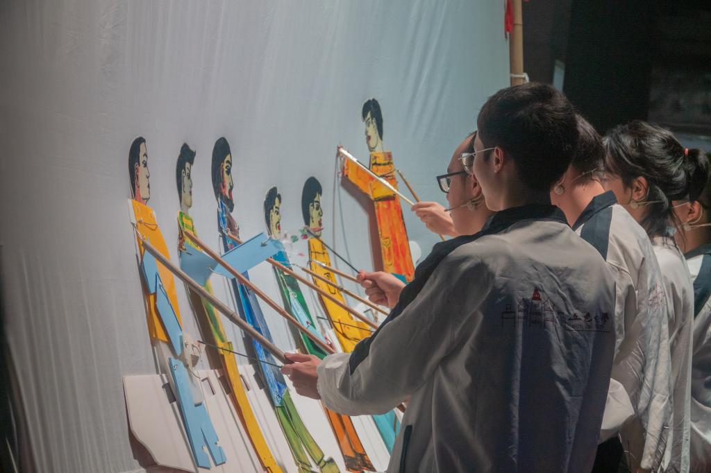 邑影相隨實踐隊現(xiàn)場展示皮影戲《紅船》片段