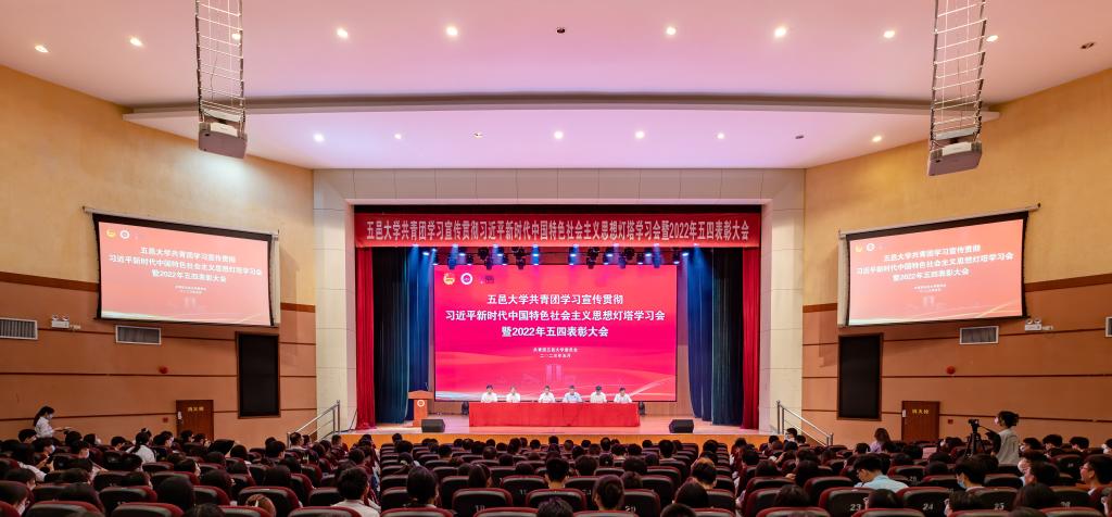 5月13日下午,五邑大學(xué)共青團學(xué)習(xí)宣傳貫徹習(xí)近平新時代中國特色社會主義思想燈塔學(xué)習(xí)會暨2022年五四表彰大會在呂志和禮堂舉行。全體在校校領(lǐng)導(dǎo)及相關(guān)職能部門負責人、各學(xué)院(部)黨委書記、副書記、團組織書記、獲獎代表、校青馬學(xué)員、團員代表等師生參加大會。大會由校黨委副書記李靄康主持。