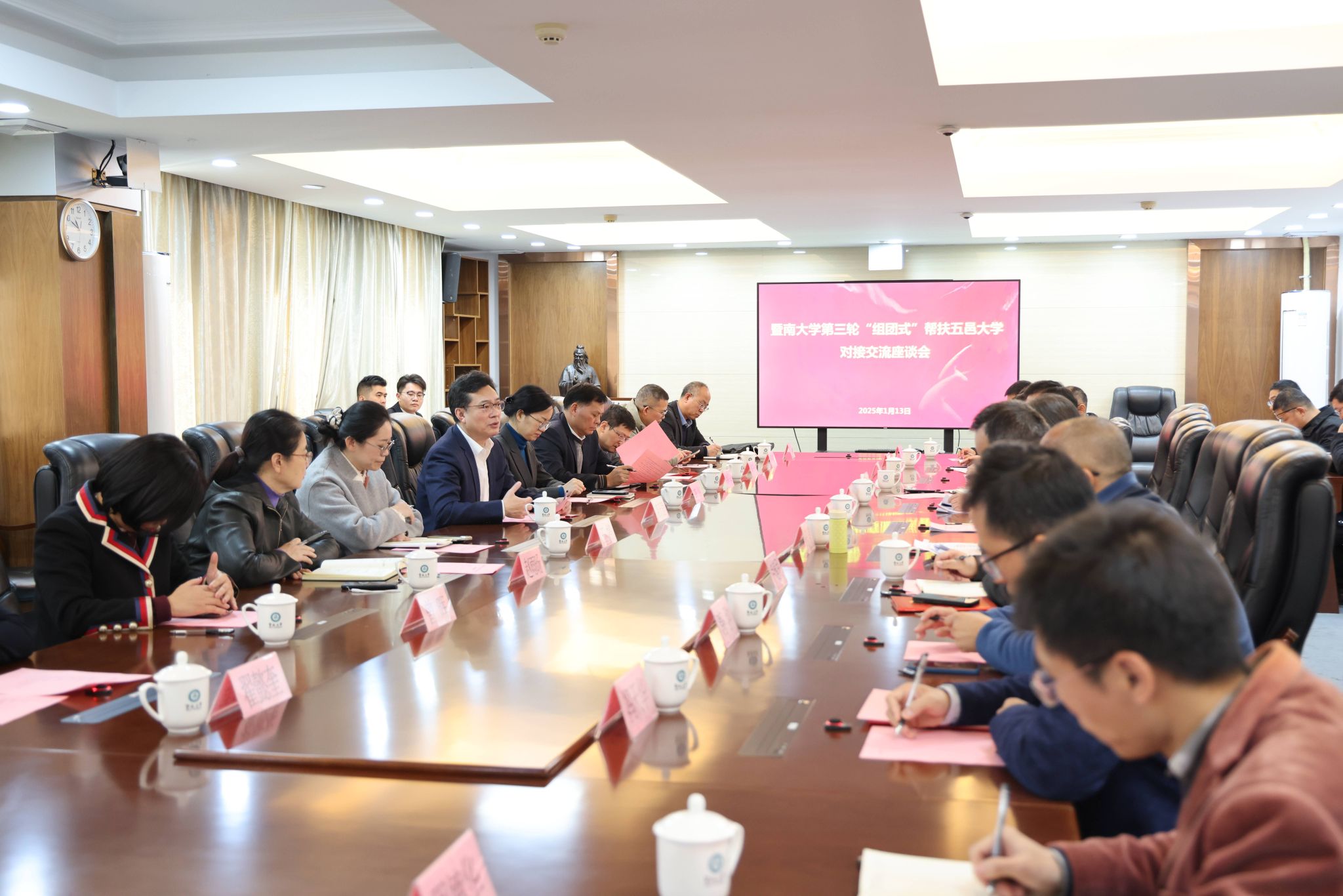 1月13日,暨南大學第三輪“組團式”幫扶五邑大學對接交流座談會在暨南大學召開,暨南大學黨委副書記陳瑩,五邑大學黨委書記欒天罡、副書記李華,暨南大學駐五邑大學第二輪、第三輪幫扶團隊全體成員和兩校相關職能部門、學院和學科負責人參加會議。