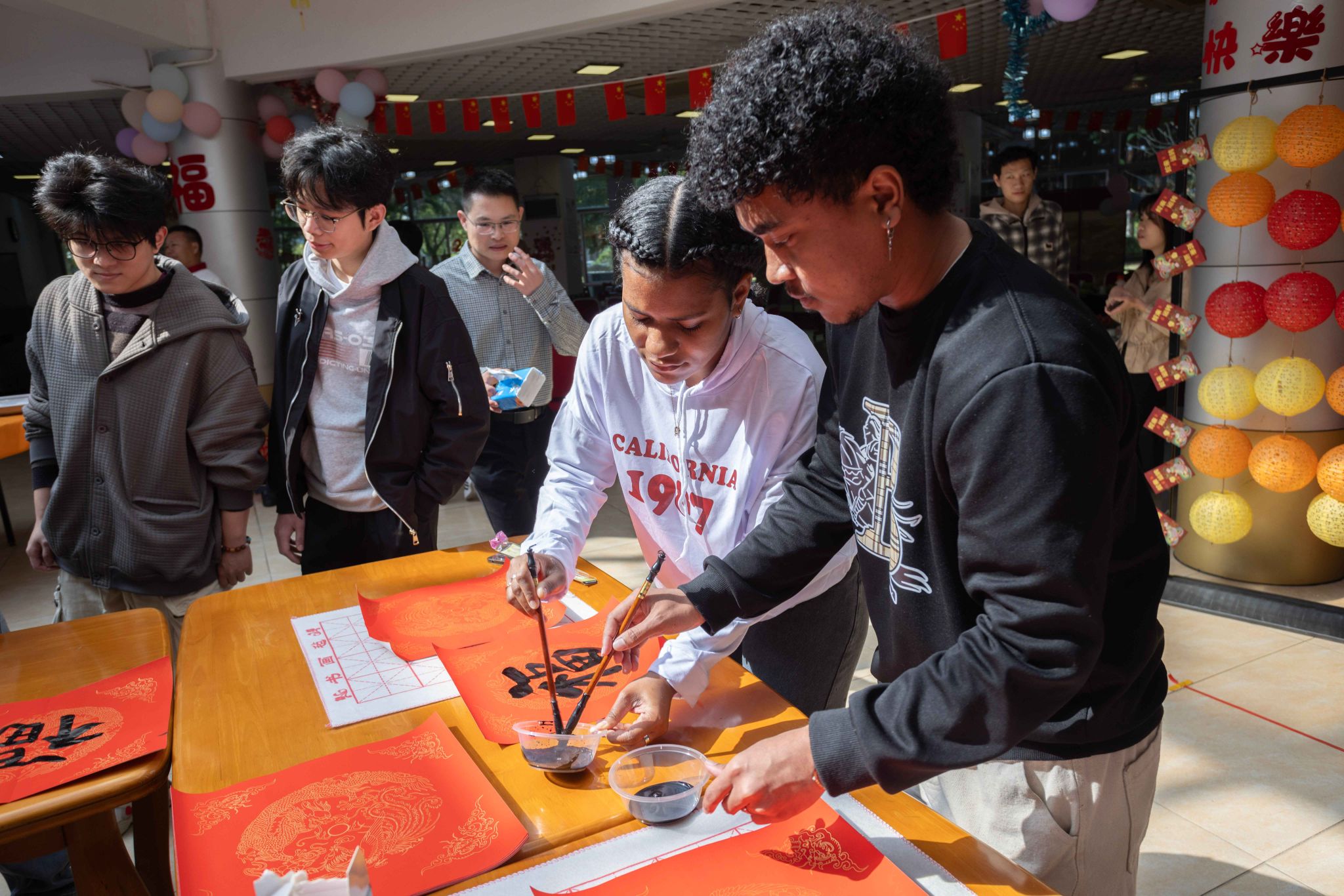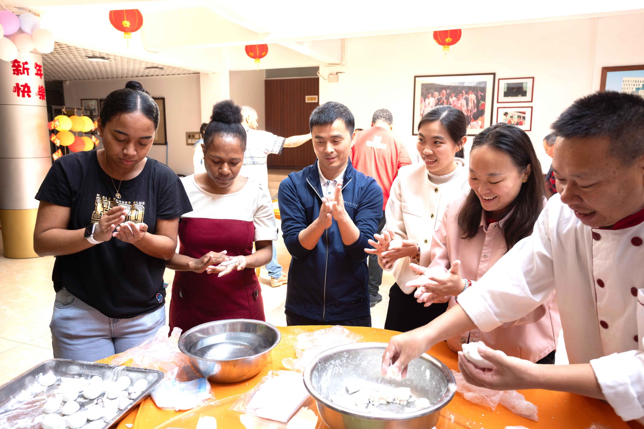 團拜會上,教師與留校學生一邊包湯圓、寫福字、猜燈謎等,一邊分享著家鄉的習俗與趣事,活動現場笑聲不斷、氣氛熱烈,大家在活動中感受著濃濃的春節文化氛圍。