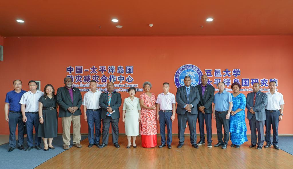 代表團(tuán)一行深入了解了中國-太平洋島國防災(zāi)減災(zāi)合作中心有關(guān)情況,實(shí)地考察了五邑大學(xué)太平洋島國研究院。
