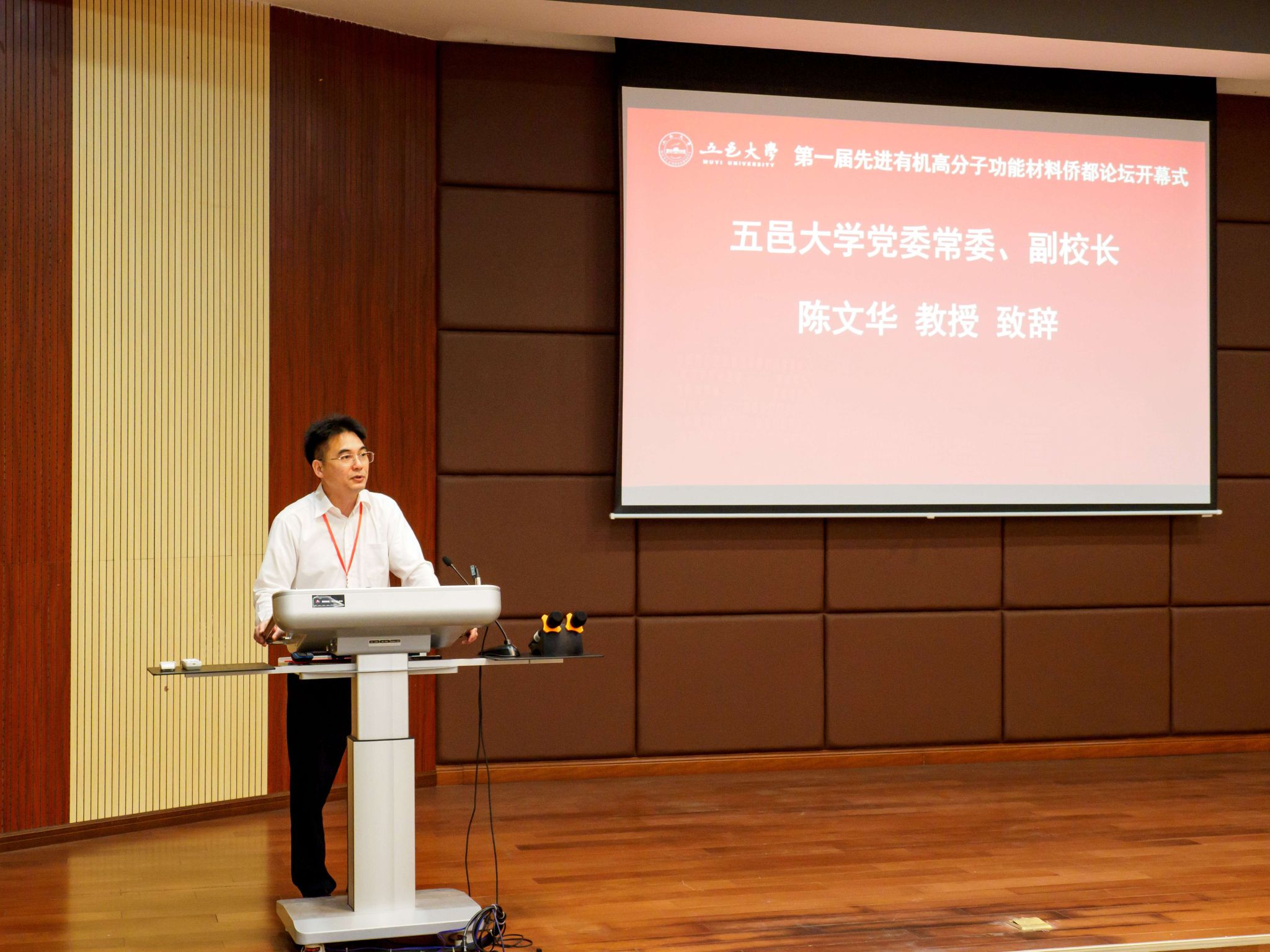 陳文華代表五邑大學向出席論壇的領導嘉賓、專家學者表示熱烈歡迎和誠摯感謝。他強調,舉辦此次論壇,旨在匯聚資深專家和青年才俊的力量,凝聚共識、深化合作,共同破解先進有機高分子功能材料領域的關鍵科學問題,為我國從“材料大國”邁向“材料強國”貢獻智慧和力量。他表示,五邑大學將以此次論壇為新起點,持續加強學科內涵建設,提升科研創新能力,培養更多理論與實踐并重、“能說會做”的應用型人才,為廣東省科技發展和我國科技騰飛注入創新動能。謝永斌代表江門市人力資源和社會保障局向與會專家表示誠摯問候,并詳細介紹了江門市人才發展環境,盛情邀請與會專家向江門市舉薦人才。