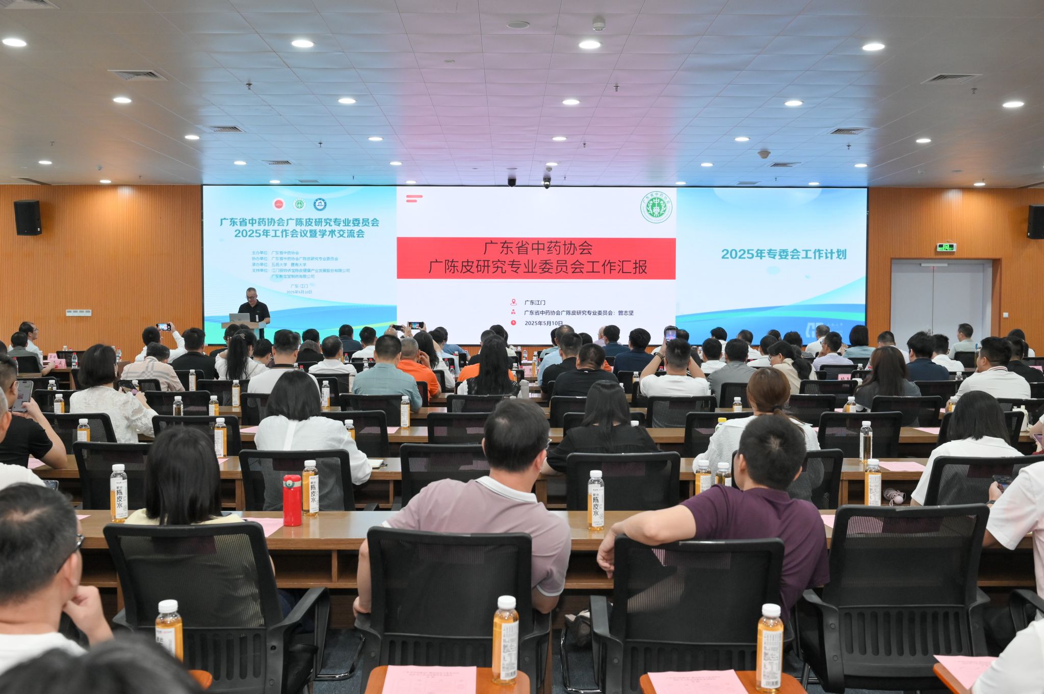 廣陳皮研究專業委員會副主委兼秘書長、江門藥檢所所長曾志堅作工作匯報。他介紹了廣東省中藥協會基本情況、廣陳皮研究專業委員會基本架構及工作內容,闡述了專委會2025年五個方面工作計劃,并從主動發現問題、打造行業地位、強化品牌建設三方面提出行業發展建議。
