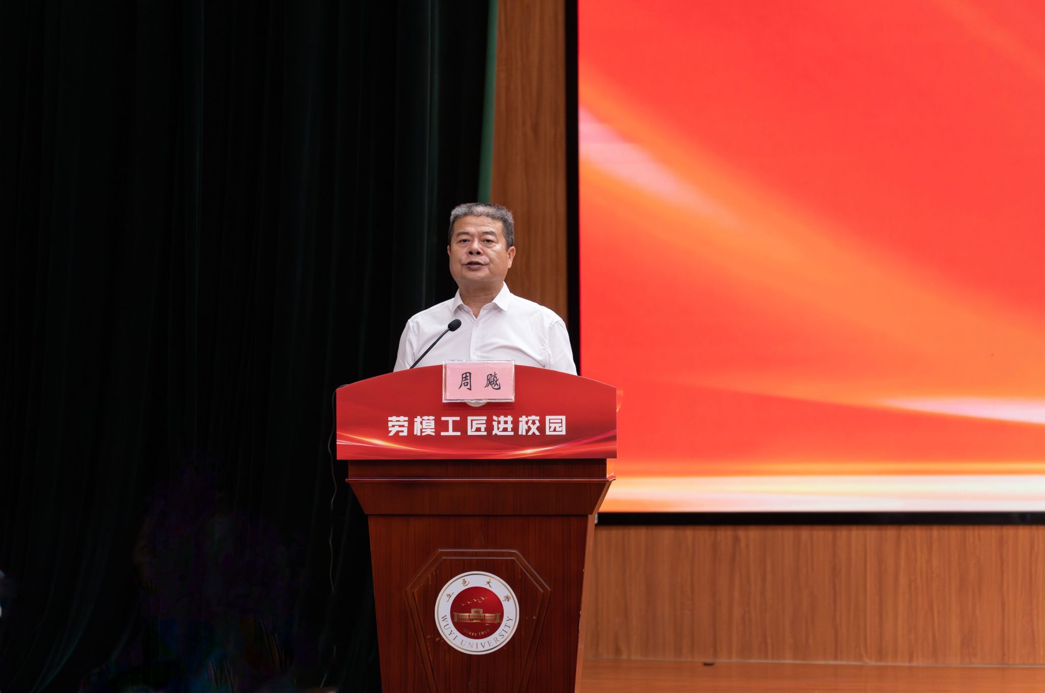 周飚在致辭中指出,40年來,五邑大學扎根僑鄉,培育了一批又一批優秀人才,李愛婷校友正是其中的杰出代表,這是學校40年教育成果的生動體現,也是對五邑大學精神的最好傳承。希望老師們繼續堅守“為黨育人、為國育才”初心使命,潛心立德樹人,培養更多踐行勞模精神、勞動精神、工匠精神的高素質應用型人才。希望同學們以李愛婷校友為標桿,學習她迎難而上的勇氣和持之以恒的精神,在專業學習中深耕細作,在人生道路上勇毅前行。