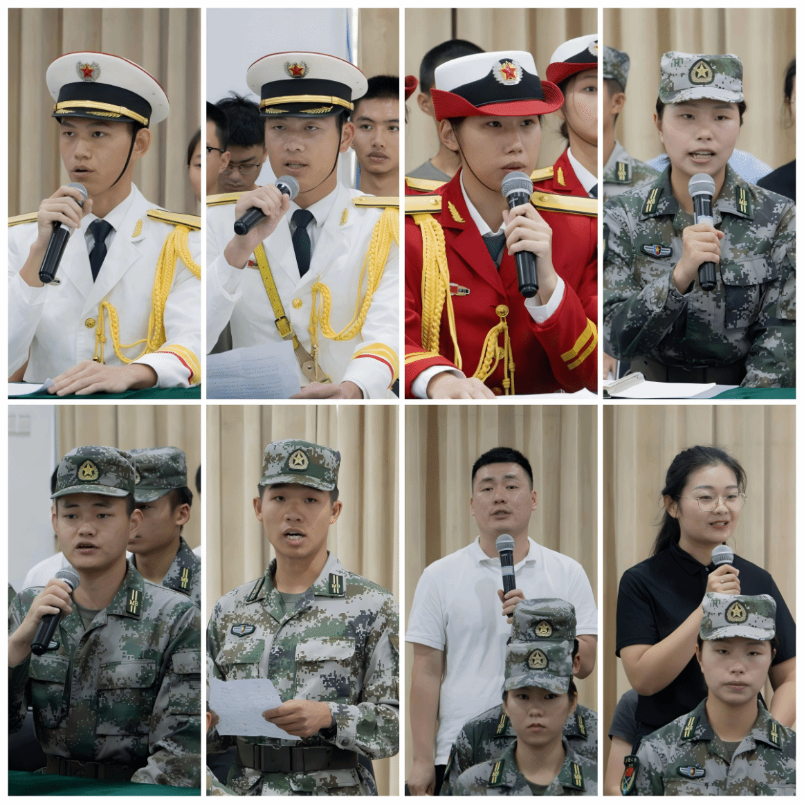 座談會現場播放了國旗護衛隊、退役學生教官隊專題宣傳視頻。國旗護衛隊及退役學生教官隊隊員陳焌杰等六名代表依次發言,講述了在國旗護衛隊及退役學生教官隊訓練期間的故事,分享了參加廣東省學校國防教育成果交流展示活動的備賽經驗與實戰收獲。數學與計算科學學院和機械與自動化工程學院輔導員、退役軍人教師代表發言,他們深情回顧了自身從“站位”到“崗位”的淬煉歷程,講述了從手握鋼槍保衛山河,到執筆育人塑造靈魂的動人故事。