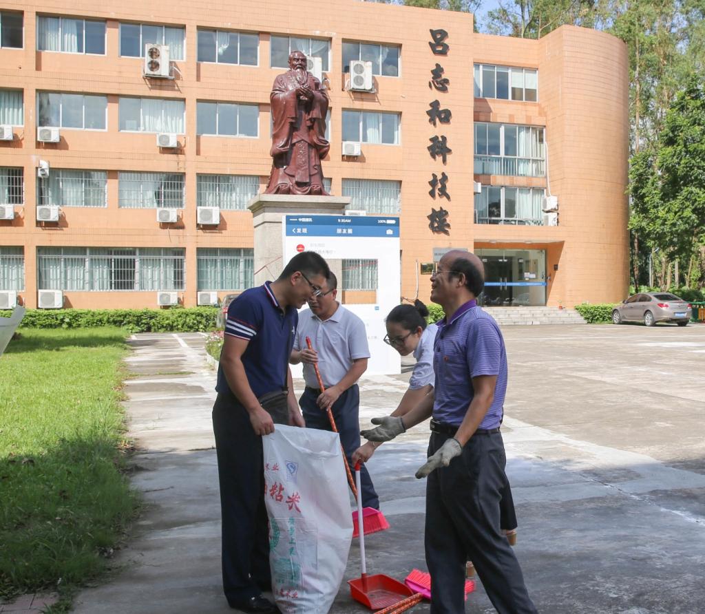 在這特別的節(jié)日里,按照學校黨委安排,結(jié)合“兩學一做”學習教育要求,校領(lǐng)導們帶領(lǐng)全校黨員在開學典禮結(jié)束后開展了“愛國衛(wèi)生”校園環(huán)境統(tǒng)一整治行動。全校的黨員教師胸佩黨徽以身作則,用榜樣的力量帶動學生、群眾,干群齊動手,師生齊上陣。除雜草,清垃圾,消滅衛(wèi)生死角,大家通力合作,以飽滿的熱情和認真的態(tài)度投入到整治行動中,為學校帶來更加整潔、有序的育人環(huán)境,也以這種特別的方式共同度過了一個極其有意義的“教師節(jié)”。(文/圖 宣傳部)