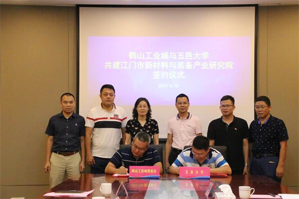 9月18日下午,在校黨委張焜書記和鶴山市委常委、組織部趙群笑部長的見證下,應用物理與材料學院院長曾慶光教授代表學校與鶴山工業城管委會簽訂了共建“江門市新材料與裝備產業研究院”合作協議。根據協議,研究院將由鶴山市提供3300萬元建設經費和2500平方米精裝修研發場地,聚焦新材料及裝備產業的技術開發、孵化。在研究院的平臺上實現人才、技術、資源的聚集洼地。研究院的正式簽約,是我校在走進產業、服務地方產業方面邁出的堅實一步。參加簽約儀式的我校人員還有應用物理與材料學院羅堅義副院長和李炳乾教授。(文/圖 應用物理與材料學院)