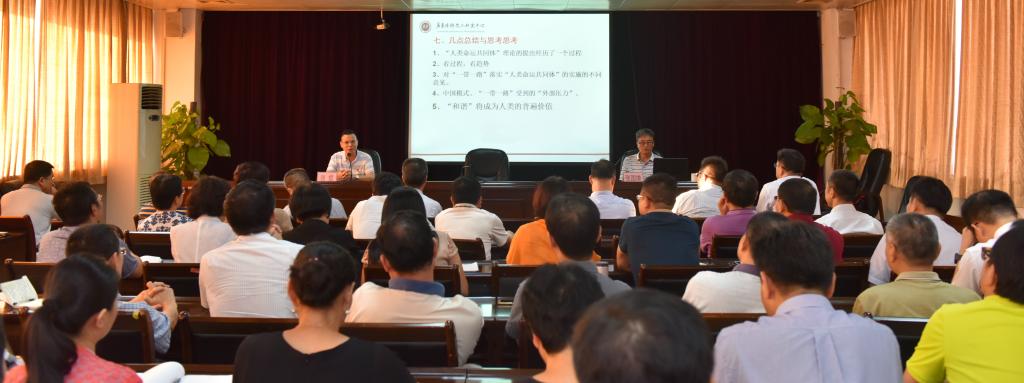 學習會邀請廣東僑鄉文化研究中心張國雄教授作了“中國方案、人類命運共同體與一帶一路”的主題報告,讓黨員干部進一步認識目前的國際形勢和中國戰略,提高思想認識,把自己的事業發展與國家的發展、民族的復興大業聯系在一起,共同為實現“中國夢”而奮斗。中心組成員、黨委委員、紀委委員、各黨總支部(直屬黨支部)書記、各職能部門負責人參加了學習。