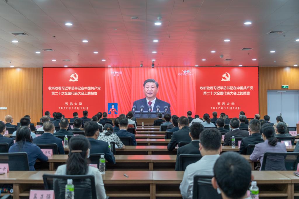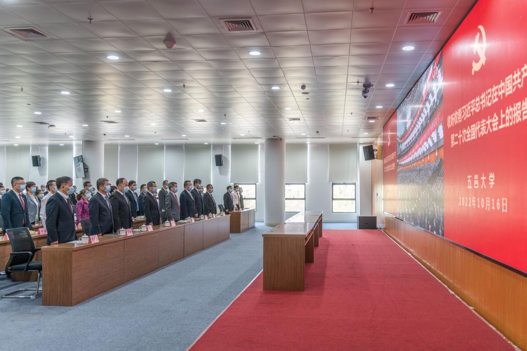 10月16日,中國共產黨第二十次全國代表大會在北京人民大會堂隆重召開。五邑大學組織全校黨員干部、師生員工認真收聽收看開幕會直播,第一時間認真學習習近平總書記在中國共產黨第二十次全國代表大會上的報告。校黨委書記張焜、校長張運華等全體校領導、校黨委理論學習中心組成員、各職能部門負責人、各學院(部)黨政主要負責人、師生代表統一著裝在學校主會場集中收看。全校各二級單位黨組織、各單位設置分會場組織師生員工集體收看學習,部分師生通過網絡、電視、廣播等多種形式收聽收看,共同見證這一激動人心的歷史時刻。