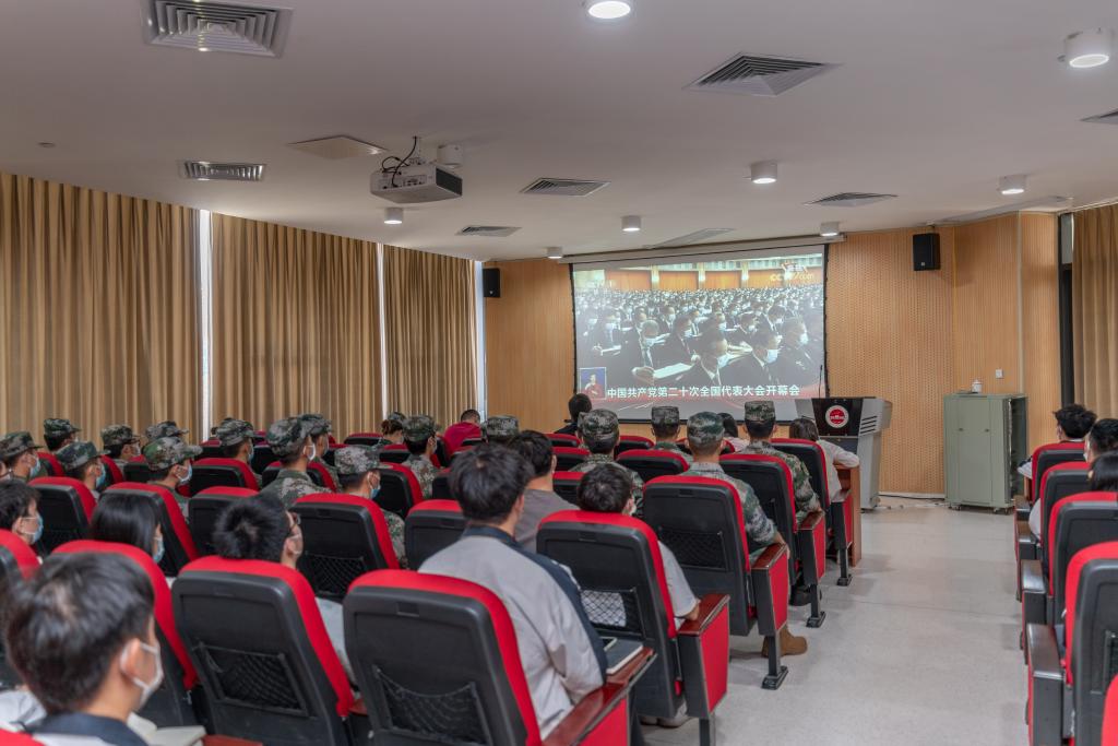師生們聚精會神全程聆聽習近平總書記在中國共產黨第二十次全國代表大會上的報告,現場不斷響起熱烈掌聲。師生們一致表示深感振奮、倍感自豪,在全面建設社會主義現代化國家開局起步的關鍵時期,要更加緊密團結在以習近平同志為核心的黨中央周圍,以奮發有為的精神狀態,埋頭苦干、奮勇前進,譜寫新時代中國特色社會主義更加絢麗的華章。