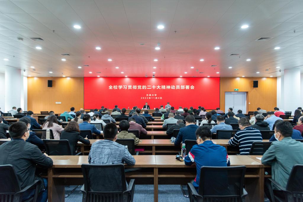 11月4日下午,全校學習貫徹黨的二十大精神動員部署會召開。會議認真學習貫徹中國共產黨第二十次全國代表大會精神,傳達教育部黨組和省委、市委和全省教育系統學習貫徹黨的二十大精神有關會議精神,對全校做好學習宣傳貫徹工作和進一步謀劃推動學校新型高水平理工科大學建設進行動員部署。校黨委書記張焜主持會議并講話,校黨委副書記、校長張運華對有關會議作了傳達。全體校領導和中層干部參加會議。