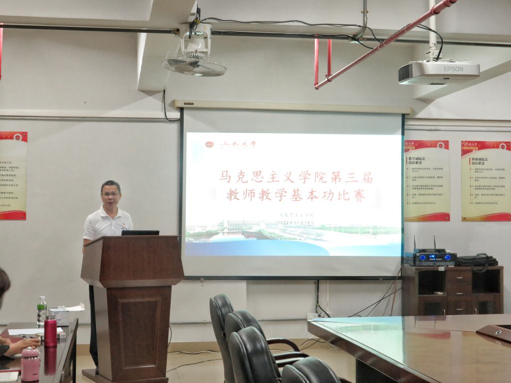 為深入推進黨的二十大精神進教材、進課堂、進頭腦,發揮高校思政課立德樹人的主渠道作用,切實提升思政課教師教學能力,近日,五邑大學馬克思主義學院舉辦第三屆思政課教師教學基本功比賽。校黨委書記張焜、黨委副書記李靄康、教務處處長趙雨旸出席并擔任了本次比賽評委,馬克思主義學院全體教師觀賽。