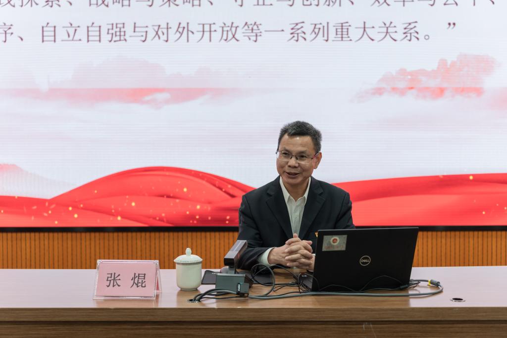張焜圍繞“走好中國式現代化之路”“準確把握高質量發展的科學內涵”“錨定高質量發展首要任務,奮力譜寫高質量發展新篇章”“爭做有理想、敢擔當、能吃苦、肯奮斗的新時代好青年”四個方面展開講述。他深入講解了中國式現代化的歷史進程、中國特色、本質要求和推進中國式現代化建設的重大原則,帶領師生深刻理解和把握中國式現代化理論的豐富內涵。他用翔實的數據“數”說新時代十年的偉大變革,強調高質量發展是全面建設社會主義現代化國家的首要任務,實現高質量發展是中國式現代化的本質要求。他圍繞黨的二十大賦予教育新的戰略地位、歷史使命和發展格局,結合廣東推動高質量發展的部署安排,立足學校緊扣新一輪高質量發展主題推動新型高水平理工科大學的工作實際,指出學校要承擔起服務區域高質量發展的時代責任,學校要建設高質量人才培養體系,提高重點學科建設水平,聚焦區域發展需求,開展有組織科研工作,增強服務地方產業高質量發展的能力,在強國建設、民族復興新征程上踔厲奮發、譜寫新篇。