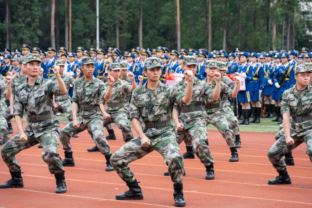 裁判員代表和參賽隊員代表宣誓。五邑大學退役學生獻上了精彩的軍體拳方陣表演。他們隊列步伐整齊、精神抖擻、軍容嚴整,動作剛勁有力、整齊劃一、虎虎生風,展現出退役軍人良好素質和過硬本領。