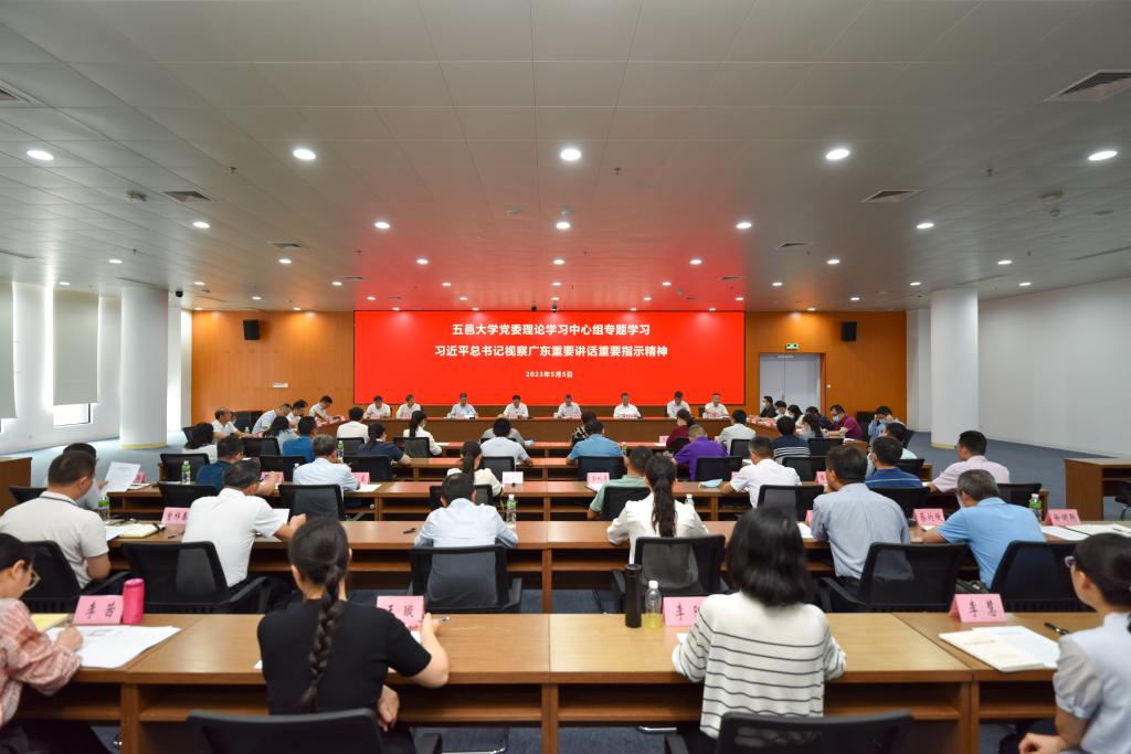 5月5日下午,五邑大學黨委理論學習中心組專題學習習近平總書記視察廣東重要講話、重要指示精神。省委第二十一巡回指導組副組長朱俊文二級巡視員等一行四人到會指導,校黨委書記張焜、校長張運華等校領導,校黨委理論學習中心組成員、二級單位黨組織書記、馬克思主義學院教研室主任等參加學習。學習會由校黨委書記張焜主持。