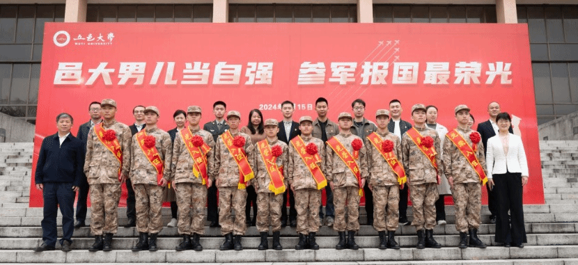 陽春三月,春暖花開之際,五邑大學校園迎來2024年上半年送兵季。著戎裝、披綬帶、戴紅花,邑大學子懷揣著父母師長的殷切期望,將使命刻在心中,從校園踏上從軍報國的征程,讓青春閃耀迷彩榮光!