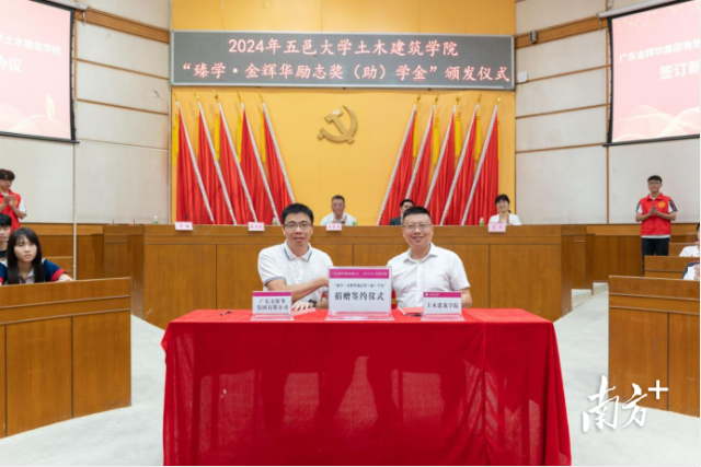 廣東金輝華集團有限公司與五邑大學土木建筑學院再簽下了新一輪的3年捐贈協議。五邑大學供圖