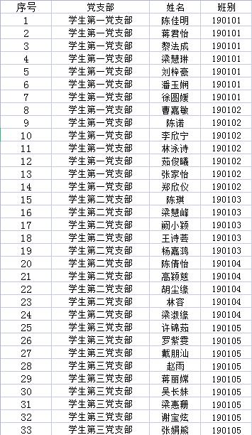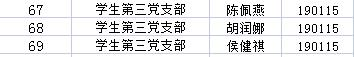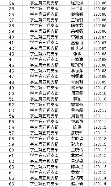 陳佳明等69位同志預備黨員考察期已滿,經本人申請、黨支部考察、支委會議研究等組織程序后,認為這些同志已具備轉正為中共正式黨員的條件,決定于近期召開預備黨員轉正會議。根據《黨章》規定,為充分發揚民主,增加發展黨員工作的透明度,確保黨員發展的質量,征求廣大黨員群眾的意見,現將擬轉正同志的情況予以公示,名單如下: