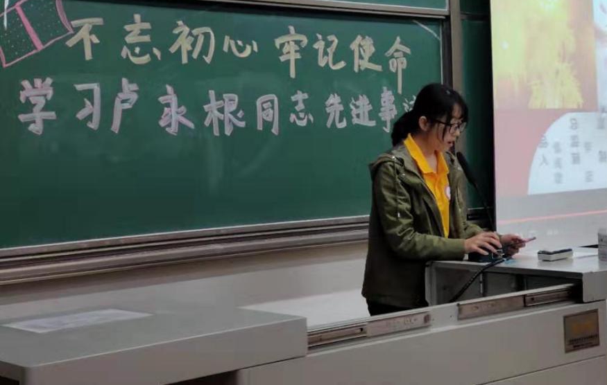 首先,輔導員陳俊穎老師向“青馬班”學員介紹了盧永根同志的基本情況,再從學習盧永根同志的愛國主義精神、優秀共產黨員的崇高品質和創業精神三個方面對全體學員進行引導。