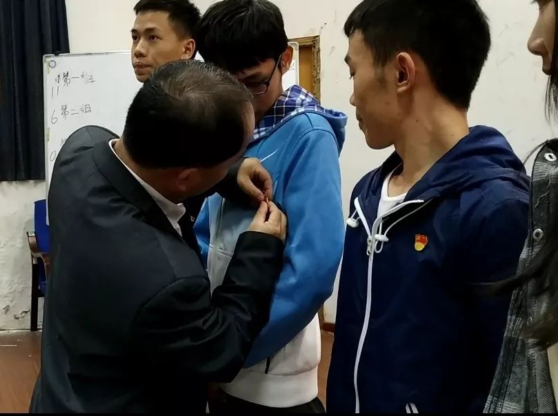 支部書記為新發展預備黨員同志佩戴黨員徽章