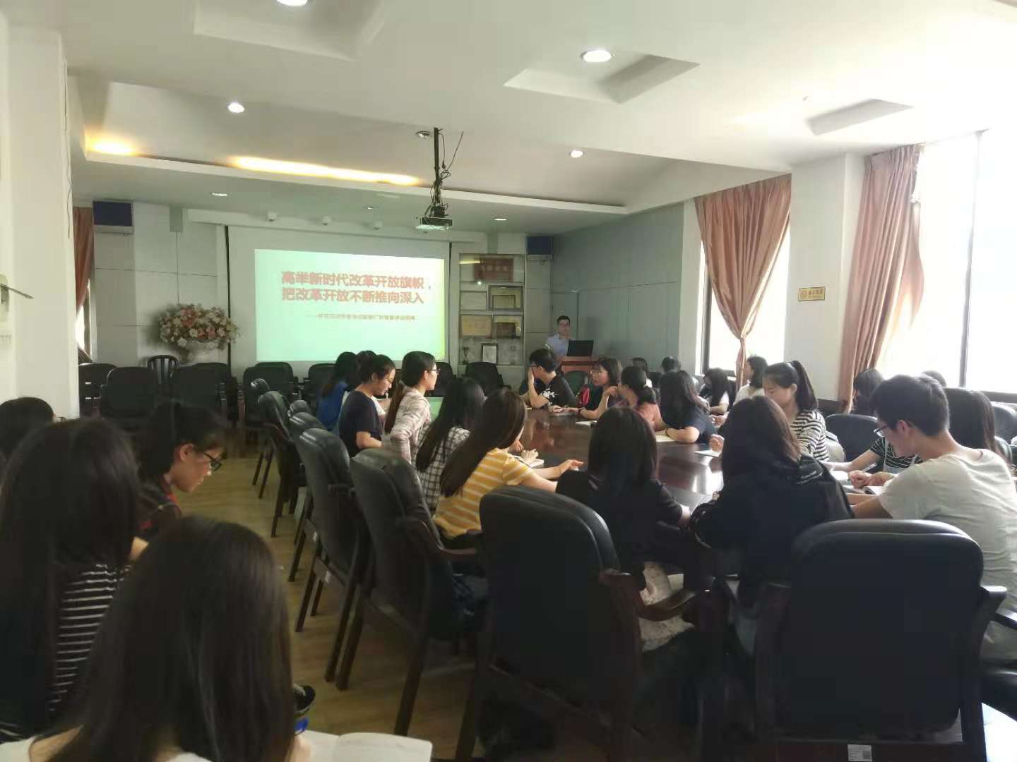 會議觀看了關于習近平總書記深入企業、高校、鄉村、社區調研考察的視頻。唐老師指出,對內改革,對外開放。改革開放作為黨的一次偉大覺醒,帶領了中國在世界上的蛻變,成為世界強國。這既是一種動力,更是一種鞭策。會上,唐老師帶領支部學習習近平總書記提出的深化改革開放、推動高質量發展、提高發展平衡性和協調性、加強黨的領導和黨的建設四個方面要求,讓黨員意識到中國的發展仍存在局部不平衡性,鼓勵每一名黨員,要弘揚敢闖敢試、敢為人先的改革精神,為黨,為國家的建設貢獻力量。會議最后,唐老師講解了《共產黨員不能信仰宗教》以及《為什么不問蒼生問鬼神?——談保持共產黨人世界觀的純潔性》兩篇文章。文章的學習,在于幫助黨員在思想上劃清唯物主義與唯心主義的界限,讓黨員意識到在馬克思主義世界觀的指引下,黨才能實現全黨在思想、理論、組織上的高度統一。
