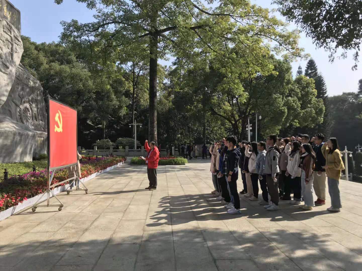 這為高校基層黨支部建設指明方向。為深入學習紅色歷史,挖掘紅色資源,傳播紅色故事,傳承紅色精神,努力打造以“紅色詩文”、“紅色歌謠”、“紅色故事”等為品牌的黨建項目,把紅色基因植入到黨建工作中,建設特色鮮明的“紅色支部”,12月8日,五邑大學經濟管理學院學生第二黨支部全體黨員,前往廣州起義烈士陵園和廣州農民運動講習所開展以“銘記歷史,振興中華”為主題的黨日活動。