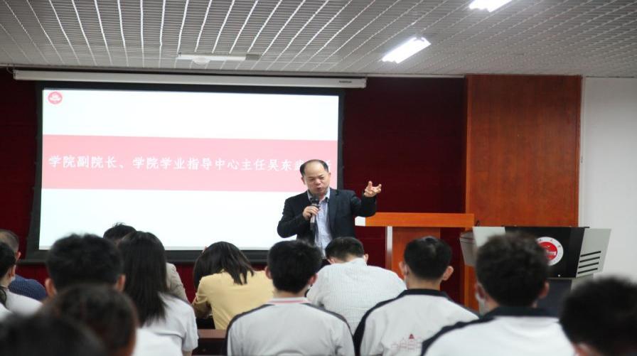 吳東武結合學生實際案例強調“學業護航計劃”的重要性和必要性,并結合自身指導學生經驗,提出提高學習效果的方法和路徑。最后,黃應忠向大家提出三點希望:一是希望同學們端正學習態度,提升學習能力;二是希望同學們明確學習目標、掌握學習方法;三是希望同學們深入學習黨的二十大精神,立志做有理想、敢擔當、能吃苦、肯奮斗的新時代大學生,為實現社會主義現代化強國不懈努力。