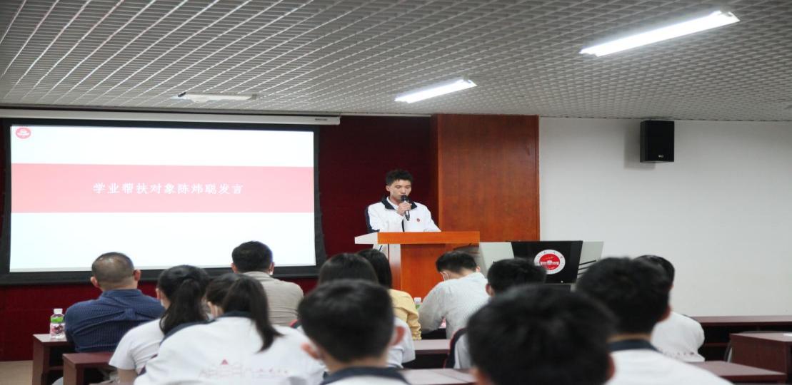 會上,艾贛鋒結合學生學業的基本情況,從工作思路、工作目標、組織架構和具體措施等四個方面詳細介紹了“學業護航計劃”實施方案及黨員“1+1”精準幫扶實施計劃。學業幫扶員梁婉甄同學從課前預習、課中記錄、課后回顧分享了個人的學習心得和幫扶經驗。退役轉專業學生陳煒聰作為幫扶對象上臺發言,希望通過“學業護航計劃”之黨員“1+1”精準幫扶活動激發學習動力,優化學習效力,從而解決學習過程中遇到的各種問題,最終形成系統的學習方法。