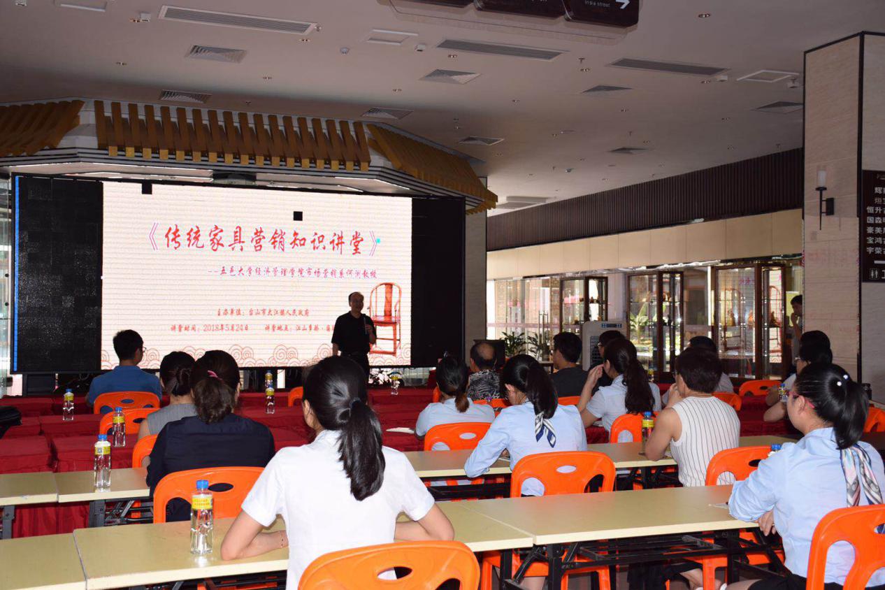 5月24日下午,由臺(tái)山市大江鎮(zhèn)政府主辦的《傳統(tǒng)家具營(yíng)銷(xiāo)知識(shí)講堂》在江山多嬌?國(guó)際文旅展貿(mào)城舉辦。五邑大學(xué)經(jīng)濟(jì)管理學(xué)院何瀏教授應(yīng)邀為此次活動(dòng)講授相關(guān)紅木家具營(yíng)銷(xiāo)知識(shí),臺(tái)山市及大江鎮(zhèn)政府相關(guān)職能部門(mén)的領(lǐng)導(dǎo)、展貿(mào)城相關(guān)進(jìn)駐商及相關(guān)工作人員、紅木家具收藏界人士和部分五邑大學(xué)碩士研究生參加了此次講座。