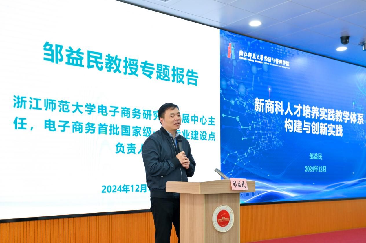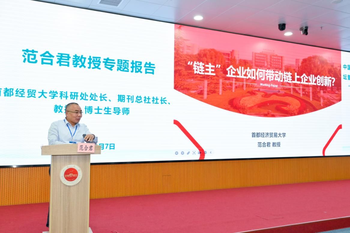 下半場主旨報告由華南理工大學工商管理學院院長許治教授主持。首都經貿大學科研處處長、期刊總社社長范合君教授探討了 “‘鏈主’企業創新如何帶動鏈上企業創新”,從產業鏈協同創新的角度,闡述了 “鏈主” 企業在推動產業升級中的關鍵作用與創新引領機制。北京師范大學政府管理研究院院長唐任伍教授以 “物聯網驅動全社會物流成本降低的新賽道與路徑” 為主題,深入剖析了物聯網技術在物流領域的應用前景,提出通過物聯網實現物流信息的實時監控與智能調度,可有效降低物流成本,提高物流效率。五邑大學經濟管理學院院長彭敏晶教授介紹了 “食物感官營銷創新與多元供給” 的研究成果,展示了如何運用感官營銷手段滿足消費者多元化需求,提升產品附加值與市場競爭力。浙江師范大學電子商務研究與發展中心主任鄒益民教授分享了 “新商科實踐教學體系的構建與創新實踐” 經驗,強調了實踐教學在新商科人才培養中的重要性,并介紹了如何構建適應時代需求的實踐教學體系。