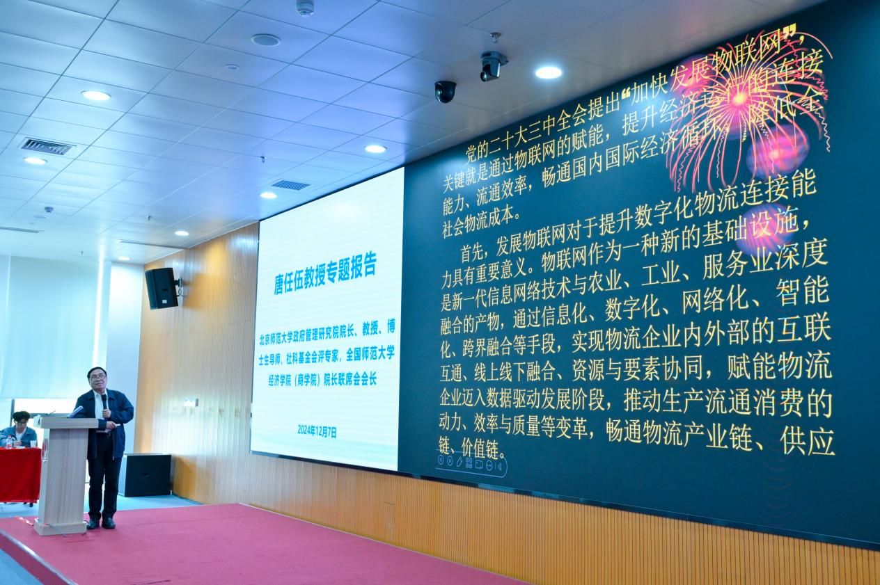 12月7日上午的主旨報告環節由北京物資學院《中國流通經濟》雜志社王可山教授主持。各位專家學者發表了精彩演講。何明珂教授在報告中深入探討如何通過參與物流國際標準制定,促進經濟全球化發展,強調其有助于優化全球物流資源配置,推動跨境貿易便利化,為物流行業的國際化發展提供新的思路與方向。浙江工商大學副校長陳衍泰教授基于數字化時代背景,分享了供應鏈網絡中的新產品開發合作研究成果,剖析數字化如何重塑供應鏈合作模式,提升企業競爭力。廣州商學院副校長鐘昌標教授圍繞 “央地戰略互嵌合力新質生產力發展的邏輯與路徑” 詳細闡述了央地戰略協同在推動新質生產力發展中的重要作用,并結合實際案例分析了具體的實施路徑與邏輯關系。