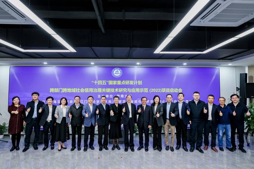 五邑大學彭敏晶教授團隊在社會治理現代化領域開展了深入調研與探索。2022年,在團隊前期研究成果積累的基礎上,課題“跨領域跨地域信用轉換與互認技術研究”(編號:2022YFC3303204)成功獲批國家重點研發計劃“社會治理與智慧社會科技支撐”重點專項課題立項,課題經費1200萬元。五邑大學為課題牽頭單位,深圳航天工業技術研究院、中國標準化研究院、航天科工網絡信息發展有限公司三家單位為課題參與單位。