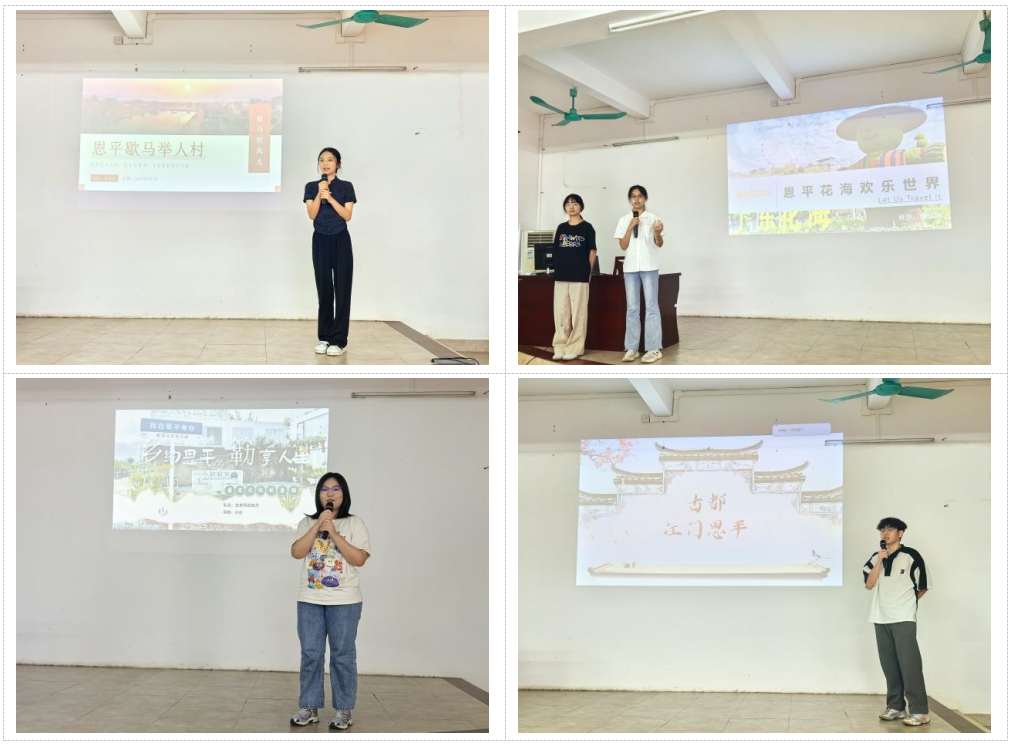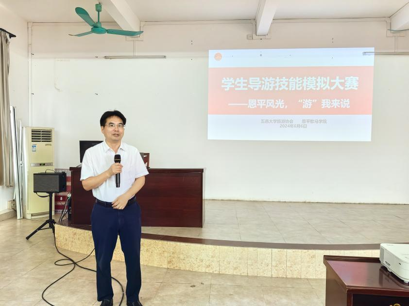 為進一步挖掘和展示恩平的旅游資源和文化底蘊,助推新型城鎮化和鄉村全面振興,推動“百縣千鎮萬村高質量發展工程”“雙百行動”加力提速,加快形成城鄉融合發展新格局,更好地為恩平旅游業提質增效。6月6日,恩平歇馬學院、五邑大學旅游協會、經濟管理學院旅游管理專業在恩平市圣堂鎮歇馬村開展學生導游技能模擬大賽。出席本次活動的有五邑大學科技處處長陳文華,經濟管理學院副院長吳東武,經濟管理學院副教授、恩平歇馬學院院長伍鋒,五邑大學駐恩平“雙百行動”服務隊副隊長全冬冬,經濟管理學院教工第五黨支部黨員代表王思,輔導員許容榕和艾贛鋒,經濟管理學院學生第三黨支部學生代表以及六支進入決賽的學生隊伍。