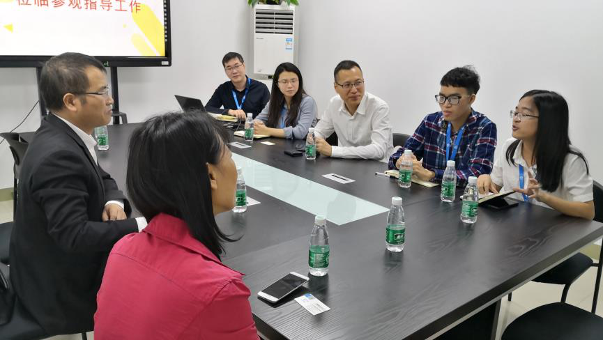 在余杰昌總經理的陪同下,五邑大學一行參觀了明道信息技術有限公司主要職能部門,較為詳細地了解了該公司的主營業務和產品;隨后雙方就進一步加強和拓展校企合作進行了會談。