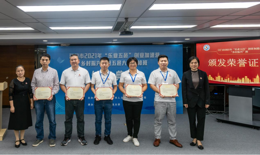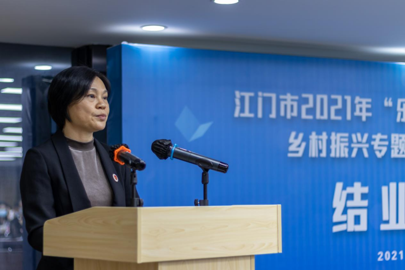 10月31日,江門市2021年“樂業五邑”創業加速營鄉村振興班結業典禮在江門市蓬江區中信銀行大樓舉行。江門市人力資源和社會保障局、五邑大學相關負責同志以及50名學員參加了結業典禮,江門市人力資源和社會保障局黨組書記文麗、五邑大學經濟管理學院黨委書記謝輝玲出席典禮并發表致辭,學員代表結合學習情況與鄉村振興戰略,分享了學習心得體會。