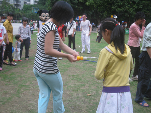 活動(dòng)包括:“小腳踩大腳”、“我來比劃你來猜”、“夾乒乓球”“猜謎語”、“二人三足”等游戲,家長和小朋友們玩得不亦樂乎,在游戲中體會(huì)親情,增進(jìn)溝通。而在場地的另一邊,則有我校音樂社以及滑輪社的精彩表演,還有翔天滑輪俱樂部的小朋友的精彩表演。