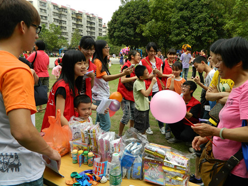 志愿者們早早地來到場地進(jìn)行精心的布置,五彩的氣球掛滿場地,吸引了許多小朋友的注意。前期準(zhǔn)備工作完畢后,第八屆育德社區(qū)親子活動(dòng)正式開始。本次活動(dòng)有多個(gè)游戲攤位,家長們帶著小朋友到各個(gè)攤位玩游戲,贏獎(jiǎng)品。