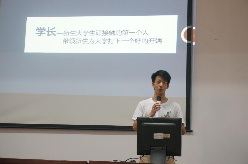 首先,2017級學長代表分版塊進行工作總結,他們結合自身的實踐經驗,從如何與新生建立有效關系網、學長角色定位與分工、班級建設?突發事件處理等四方面進行總結與分享,提出要把握細心耐心,持續關注而又適時放手、沉著冷靜等原則處理新生問題,以助新生更快地適應大學生活。隨后,經濟管理學院自律委員會學生干部代表潘小霞向2018級學長進行學長工作內容培訓,詳細解說學長常規性工作內容。接著,2017級學長代表何曉婷帶領2018級全體學長進行學長宣誓。最后,輔導員龔嘉玲老師對2017級學長工作表示肯定,并對2018級學長提出期望與鼓勵,她希望學長們不忘初心、以身作則,優秀從自我做起、爭做新生好榜樣。