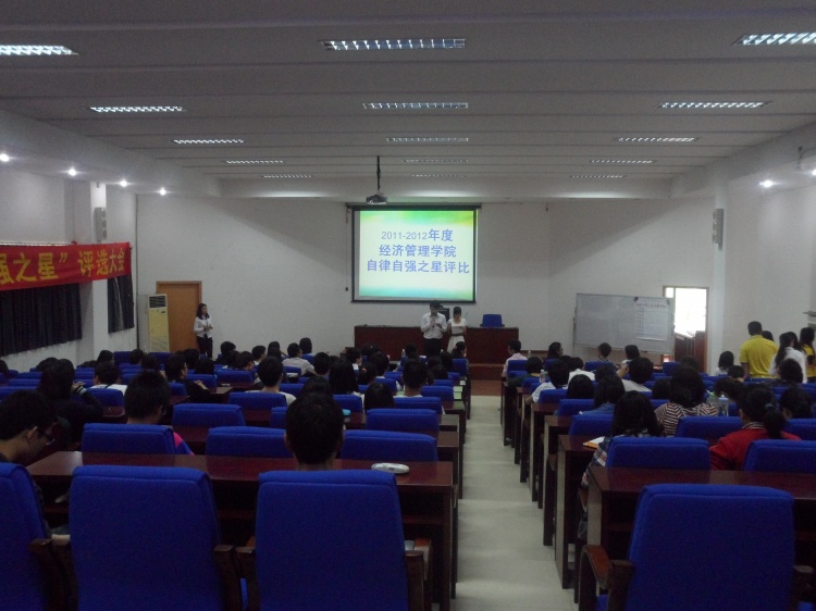 2012年3月30日下午,經濟管理學院2011-2012年度“自律自強之星”決賽在馬蘭芳樓301室成功落下了帷幕。該比賽由經濟管理學院律委會主持,徐平華老師、王姍老師和嚴靜老師三位輔導員老師出席了本次大賽。