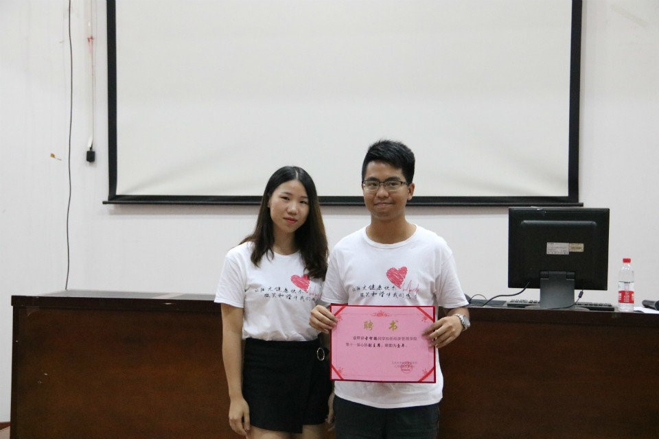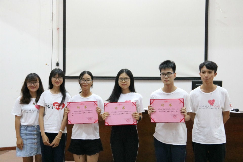 會議第二個環節,由現任主席梁照宇就心協一年來的工作進行總結。主席指出:在這一年里,我們心協的活動都能按時按量按質完成,并且在全校心理健康教育協會年度總結會議中評得優秀分會的稱號。不過本學年協會仍然存在著在較為嚴峻的問題:一是工作對接方面的一些不足;二是活動創意不足。希望明年在葉老師和新任主席團、新任部長團的帶領下可以改善不足的地方,努力讓協會更好的發展,向下一屆新生以及未來的每一屆新生展示我們經管心協愛護每一位學子陽光、健康、快樂、微笑、和諧、成長的美好形象。