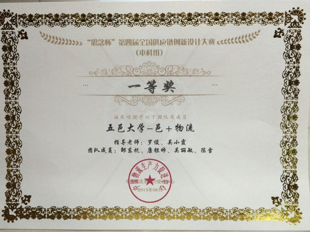 我校經濟管理學院羅俊、吳小霞兩位老師指導并帶隊參加了最終的決賽答辯。我校物流和會計專業的鄒東航、康銀帥、吳麗敏和陳雪四位學生,經過5月31日的現場網賽和6月1日的現場答辯,最終以總成績第二名獲得一等獎(總成績第一名的華南理工大學獲得特等獎);并在四個單項獎項里,獲得最佳方案設計團隊獎和最佳講解答辯團隊獎。同時,兩位指導老師獲得“優秀指導老師”稱號。(文/圖 經濟管理學院)