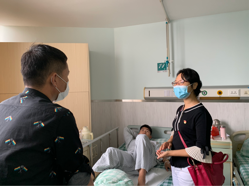 報到期間,學(xué)院有2名新同學(xué)身體不適需要就醫(yī),班導(dǎo)師、輔導(dǎo)員及學(xué)長全程陪同,聯(lián)系家長安頓住院,對于左腳歪傷的同學(xué),班導(dǎo)師葉藝勇買來了拐杖協(xié)助學(xué)生行動,學(xué)院領(lǐng)導(dǎo)、老師到醫(yī)院、宿舍送來了學(xué)院的關(guān)心和問候,鼓勵學(xué)生不要有心理負(fù)擔(dān),以積極心態(tài)接受治療,爭取早日康復(fù)。