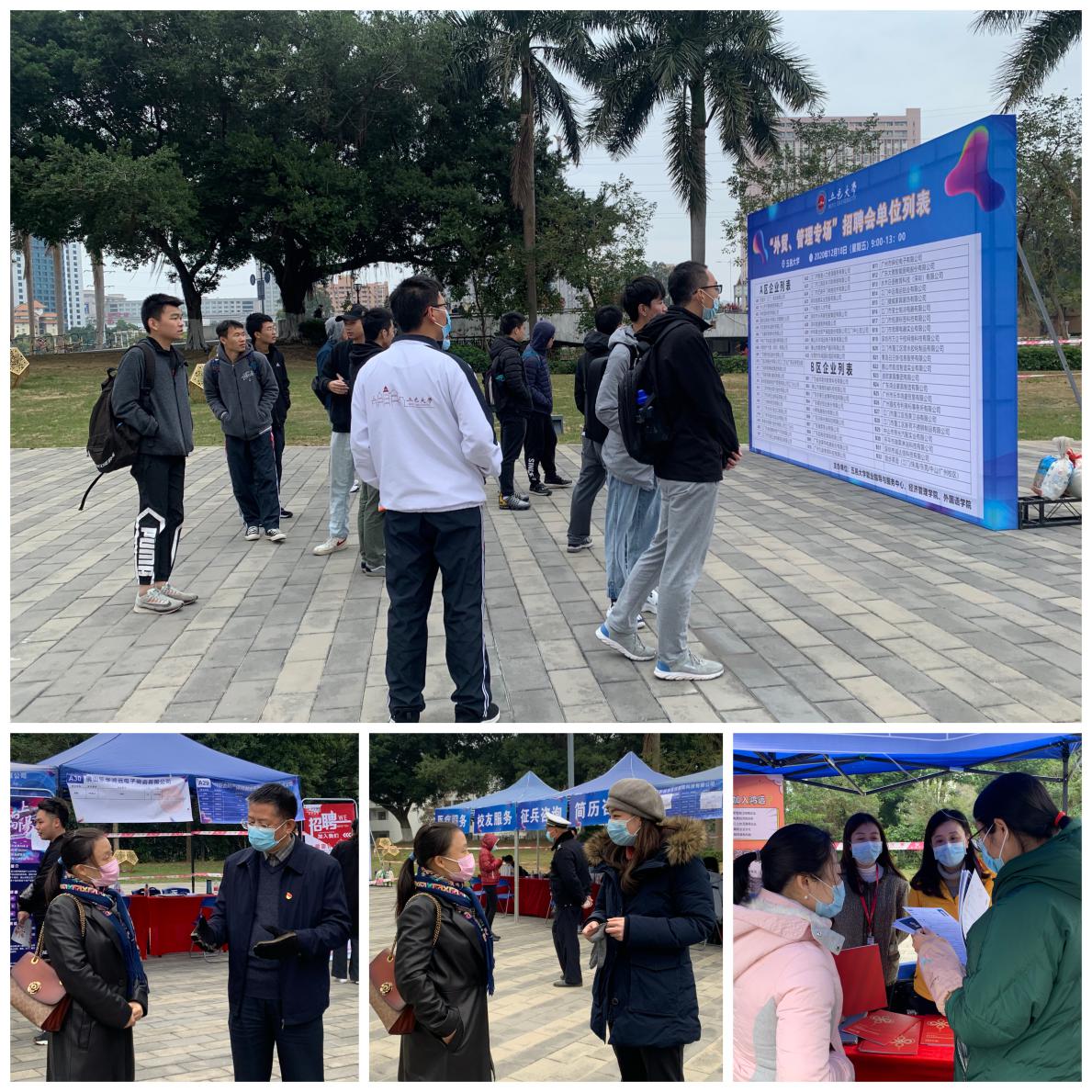 12月18日上午,由學校就業指導與服務中心主辦,經濟管理學院和外國語學院承辦的五邑大學2021屆畢業生“外貿、管理專場”招聘會在學生綜合服務中心樓廣場順利舉行。